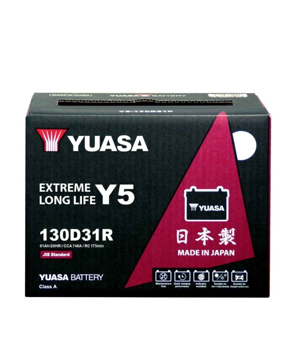 The YUASA Y5-130D31R is a high-capacity, heavy-duty automotive battery built for maximum power, durability, and long-term performance. Designed using advanced YUASA technology, it delivers powerful engine starts, stable voltage supply, and dependable performance even in extreme heat conditions such as the UAE climate.